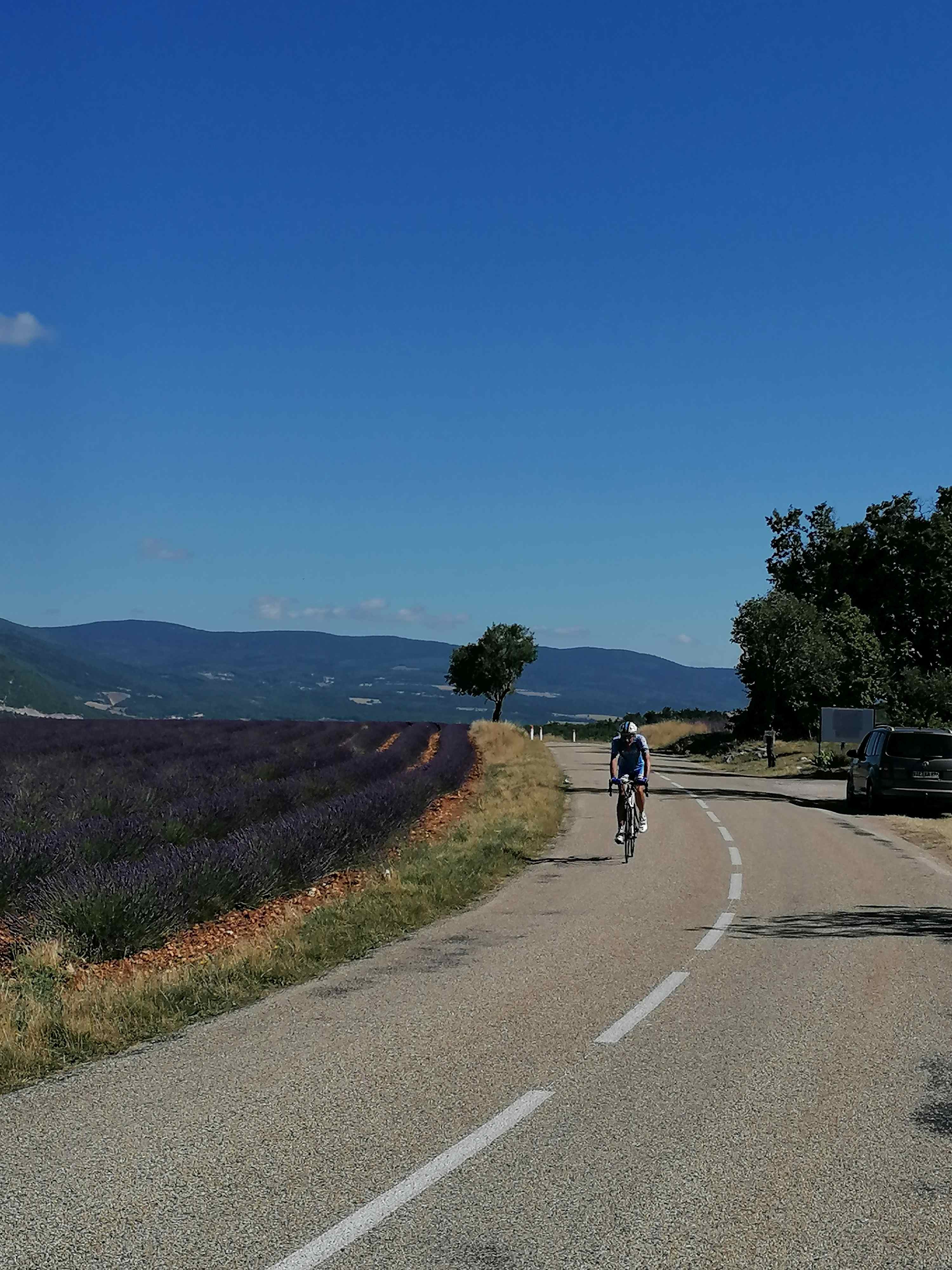 Mein Highlight war natürlich der Mont Ventoux, den ich 3-Mal mit meinem Rennrad hochfuhr. Ich fuhr da teils um 06:00 Uhr los, da es bis 38 Grad wurde und ab 13:00 Uhr wäre es fast unerträglich geworden. Die Strecke vom Haus bis auf den Mont Ventoux und zurück betrug ca. 120km. Mein Scott Rennrad nahm ich von der Schweiz mit, doch Bikes in guter Qualität hatten wir vor Ort gemietet.