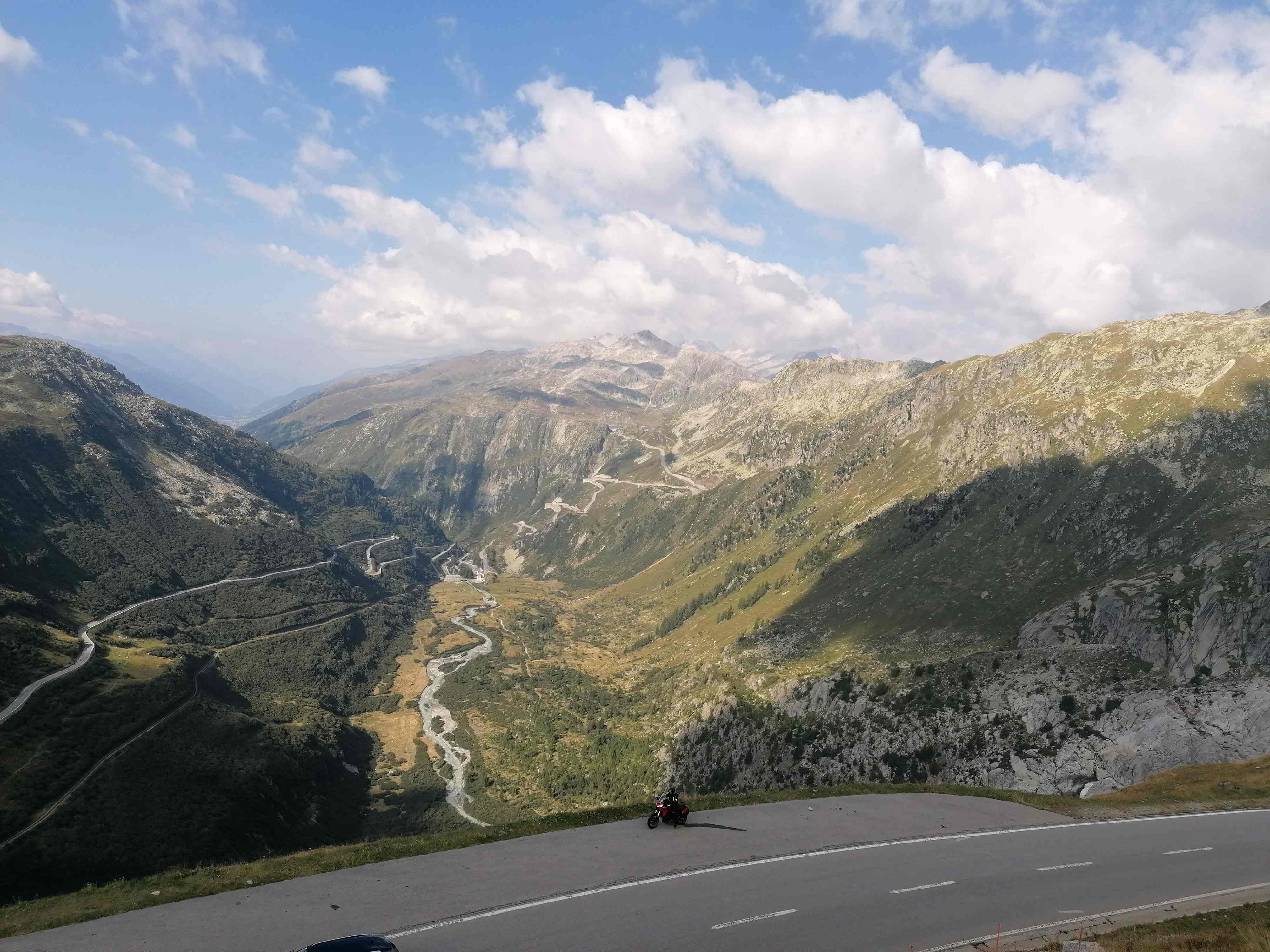 Auf der Höhe des Hotels ist gleich die Abzweigung Richtung Nufenenpass (2477 m) welchen ich als 2 Pass an diesem Tag in Angriff nehme. Auch da verbringe ich nicht viel Zeit auf der Passhöhe sondern fahre gleich weiter talwärts Richtung Airolo, da mein Magen knurrt und ich dort plane etwas zu essen.