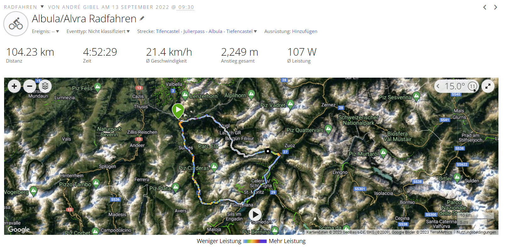 Kurz nach Bever folgt ab LaPunt der Anstieg zum Albulapass. Im Aufstieg und der noch brennenden Septembersonne musste ich die üppige (aber feine) Mahlzeit dann etwas bereuen.