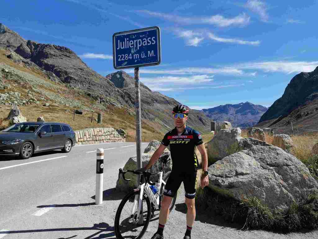 … durch Bivio, wo ich meine 1. Kaffepause einlegte und dabei ein Stück Früchtewähe verschlang und weiter auf den Julierpass.