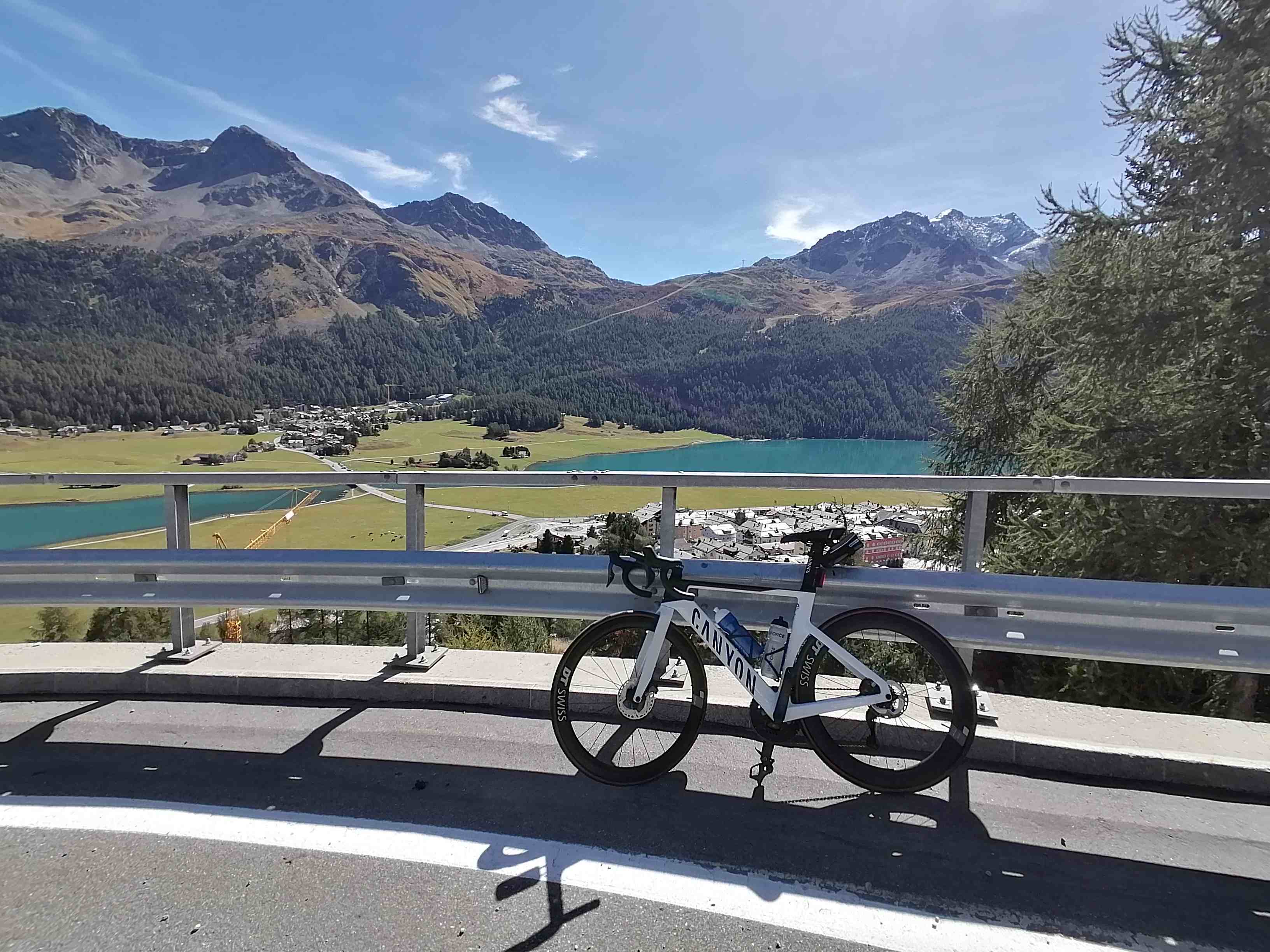 Bei der Abfahrt nach dem Julierpass unmittelbar vor dem Tunnel oberhalb Silvaplana hat man einen genialen Ausblick auf den Silvaplanasee, dem Paradies für Kiter und Surfer.