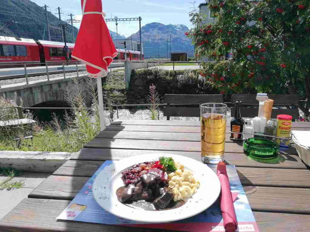Ab Silvaplana fuhr ich via St. Moritz, Samedan nach Bever, wo ich meinen Bauch mit Rehpfeffer und Spätzli füllte.