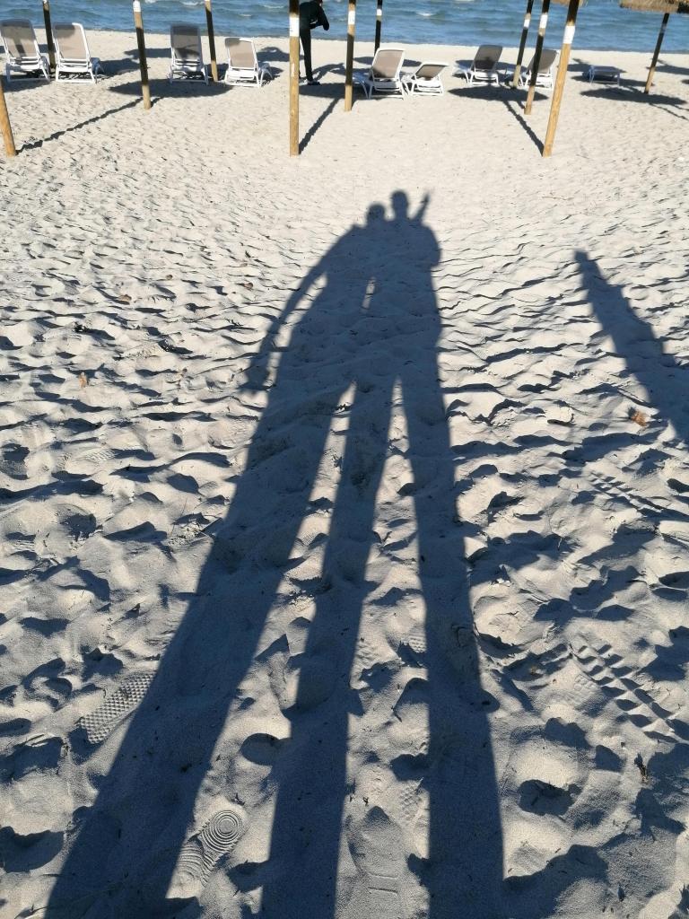 Da wir infolge einer Flugzeitänderung erst am Abend bei Dunkelheit im Hotel ankamen gab es für uns nur noch einchecken, ein kurzes Nachtessen und dann ab ins Bett. Fast während des ganzen Aufenthaltes waren wir meist mit Winterjacke oder sonstigen sehr warmen Kleidern beim Essen, da es “arschkalt” war. Angeblich war die Heizung kaputt und ein Ersatzteil müsse vom spanischen Festland besorgt werden …? Es war fast wie ein Wettbewerb – welches unserer 3 Zimmer die höchste Temperatur hatte. Es wurde zum Glück von Tag zu Tag wärmer … oder wir gewöhnten uns an die frostigen Innentemperaturen … und am Schluss brachten wir es doch auf 19.1 Grad! Wie man unten sieht, gibt es nicht nur Gäste die den abendlichen Apéro bei warmer (Winter-)Kleidung genossen, sondern auch harte Typen (meist Kinder), die es in den Pool oder ins Meer wagten. Es bleibt zu erwähnen dass die (Aussen-)Temperaturen tagsüber herrlich und fast schon sommerlich waren und wir während der ganzen Urlaubsdauer immer kurz-kurz auf dem Rennrad fahren konnten.