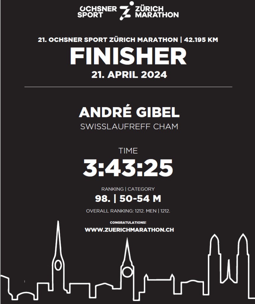 In diesem Jahr habe ich den Schwerpunkt wieder auf “running” Anlässe gelegt und bis im August das Rennrad etwas gar vernachlässigt. Nach meinem Training in Mallorca bis zum Zytturm Duathlon in Zug anfangs Juni habe ich es v.a. wetterbedingt nur gerade 1 Mal auf mein Canyon Rennrad geschafft. Mit dem Zürich Marathon absolvierte ich früh im Jahr wieder einen Strassen-Marathon, nachdem im Jahr 2023 der X-Trail in Davos mein längster Lauf war. Ich nahm immerhin an 6 Running – Events und 2 Duathlons (Zytturm Zug / PowerMan Zofingen), auf welche ich hier nicht eingehe, teil. Mit dem Zürich Marathon und dem Lauerzerseelauf machte ich in diesem Jahr auch Bekanntschaft mit zwei für mich neuen Wettkämpfen.