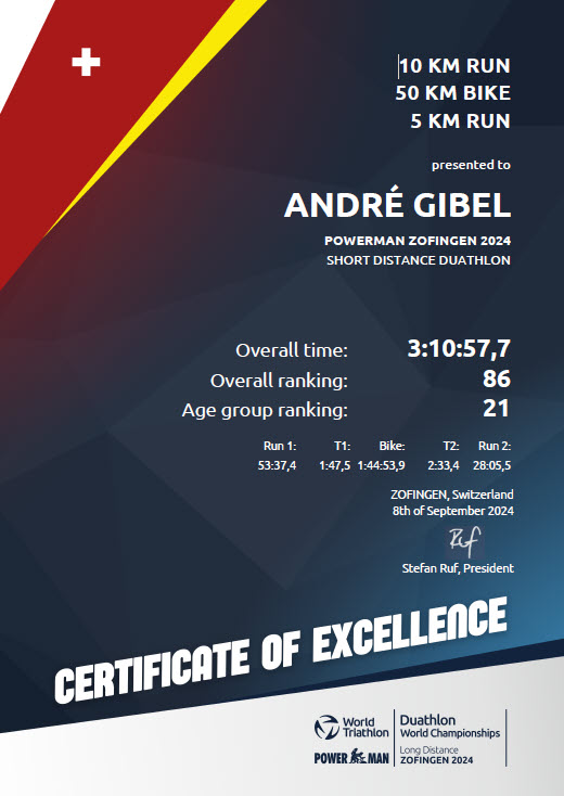 Ich absolvierte im 2024 lediglich meinen “Heimduathlon” in Zug und den Powerman in Zofingen.