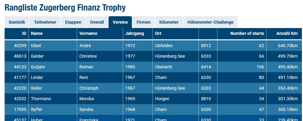 Schon seit Jahren nehme ich an der “Zugerberg Finanz Trophy” teil und starte jeweils für den “Swiss Lauftreff Cham”. Ich war die letzten ca. 8 Jahre immer unter den ersten 4 zu finden, doch dieses Mal grüsste ich zum Jahresende mit 640 gesammelten Kilometern von der Spitze und durfte einen Skinfit Gutschein entgegen nehmen. Danke Zugerberg Finanz AG (Hauptsponsor).